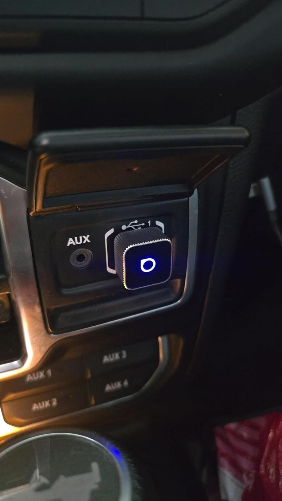 My previous AirPlay device was the shape of. USB stick so it stuck stuck out on my console and was a bit obtrusive. This device is nice and smooth and sits flush with the console and is very small. It lights up blue to let you know it’s connected. That is fine unless you have red or a different color dash lights.