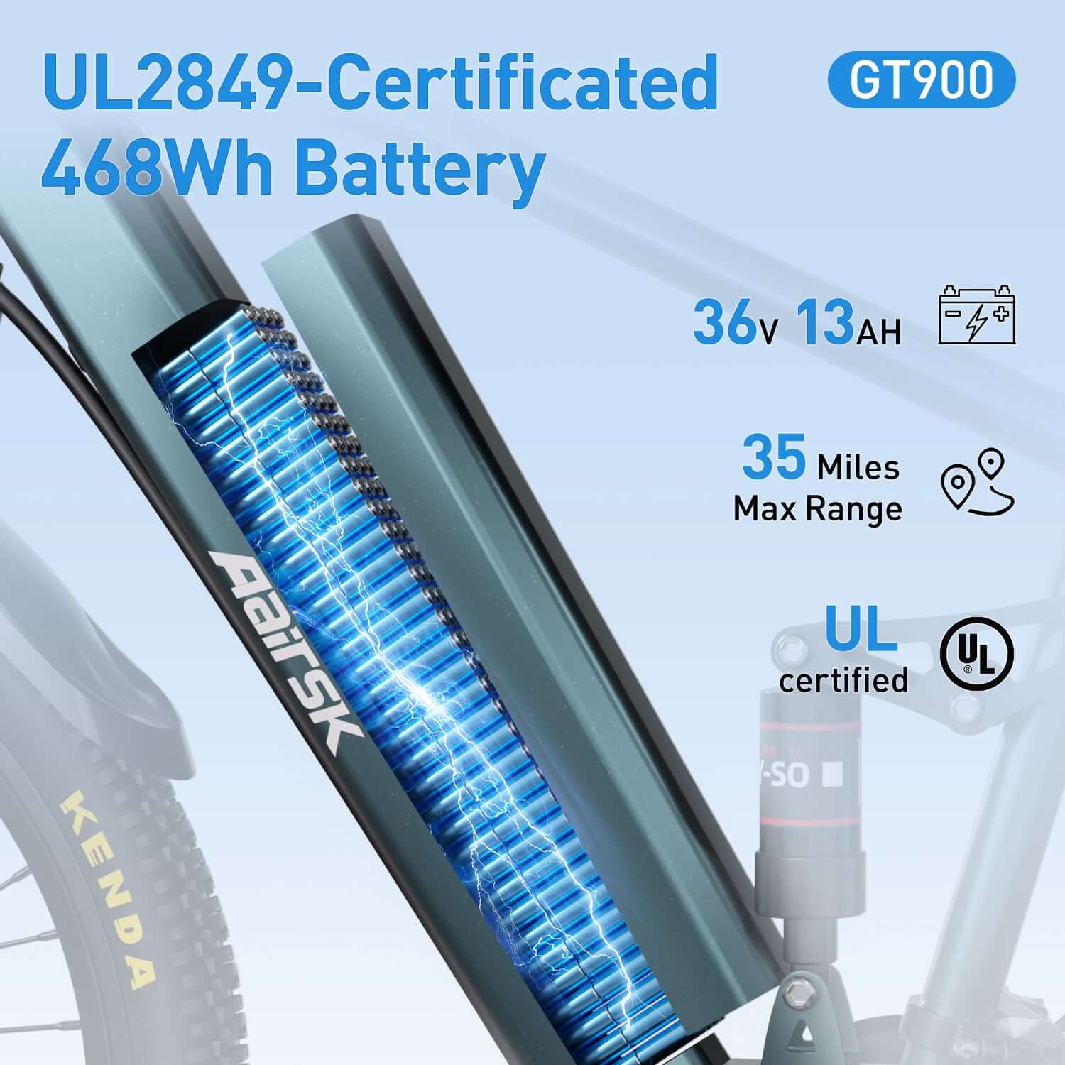 - Efficient 400W Motor – Powered by a 400W brushless motor, the Aairsk GT900 provides a reliable and smooth ride for both city commuting and trail adventures. Enjoy steady acceleration and optimal power for your journey.
